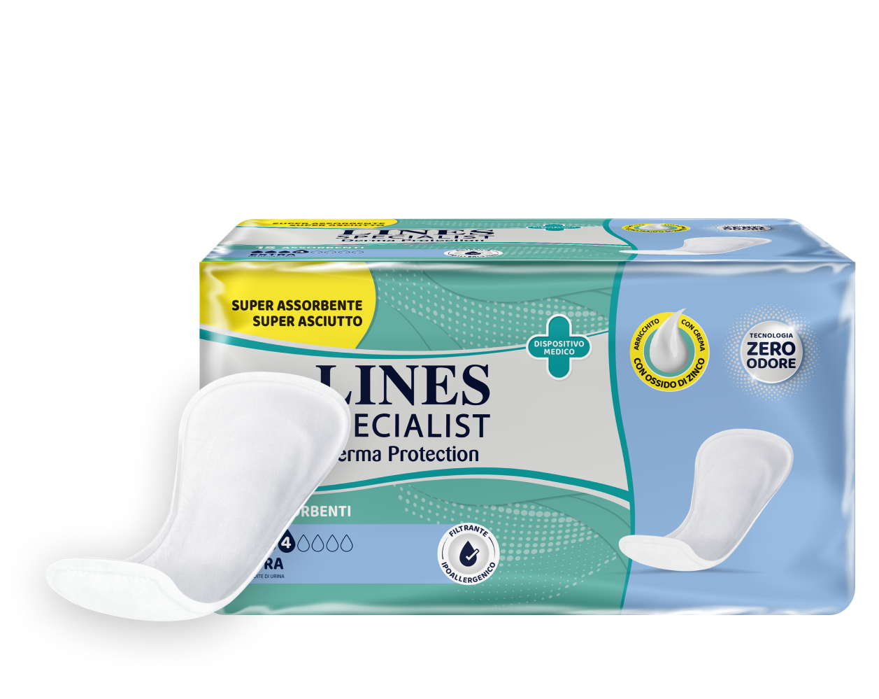 Gli Assorbenti Derma Protection offrono elevato comfort e discrezione senza rinunciare alla protezione. La nuova formula arricchita con crema con ossido di zinco permette di mantenere la pelle asciutta e sana.