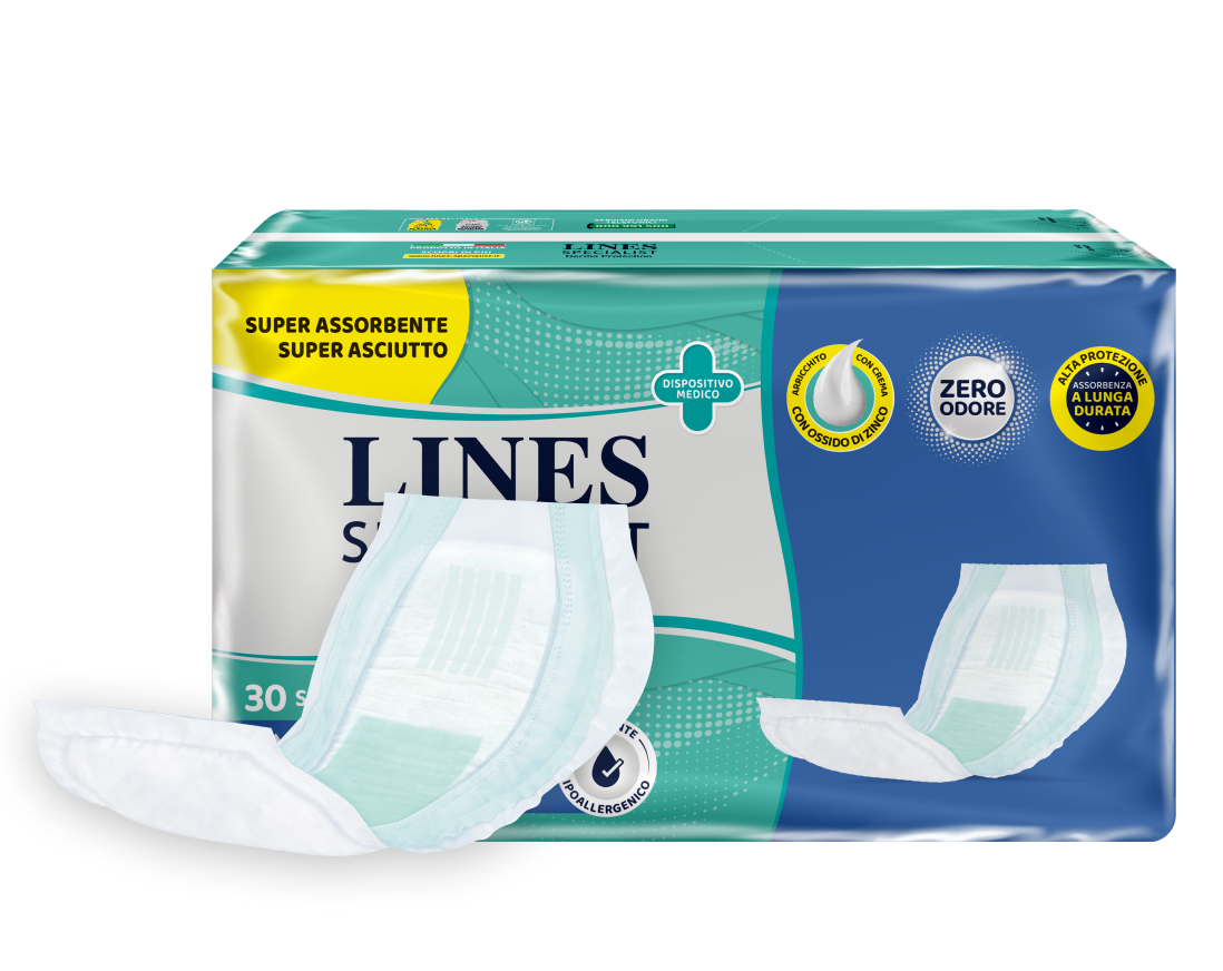 Offre protezione grazie all'ampia superficie assorbente e ai materiali traspiranti, allontana il bagnato dalla cute lasciandola traspirare naturalmente.