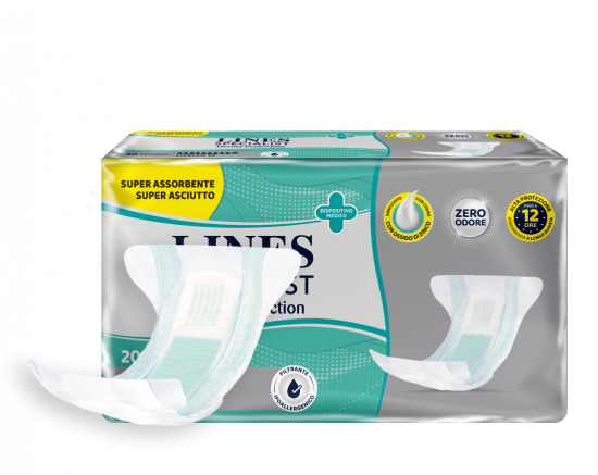 Offre protezione grazie all'ampia superficie assorbente e ai materiali traspiranti, allontana il bagnato dalla cute lasciandola traspirare naturalmente.