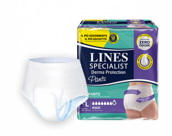 I pants Derma Protection aderiscono perfettamente al corpo grazie ad una fascia elastica morbida ed avvolgente. La nuova formula con crema con ossido di zinco aiuta la pelle a rimanere sana.