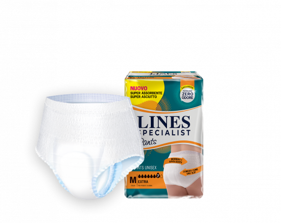 I Pants LINES SPECIALIST sono delicati a contatto con la pelle grazie al loro tessuto morbido e con ossido di zinco -