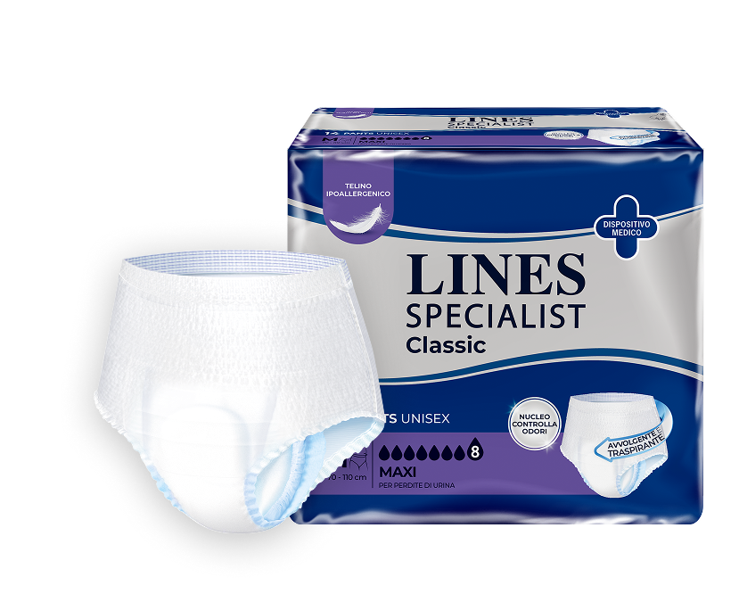 I Pants sono ausili assorbenti monouso che si indossano come normali capi di biancheria intima. Grazie alla fascia addominale elastica e al rivestimento esterno morbido e traspirante, offrono il massimo confort e discrezione.