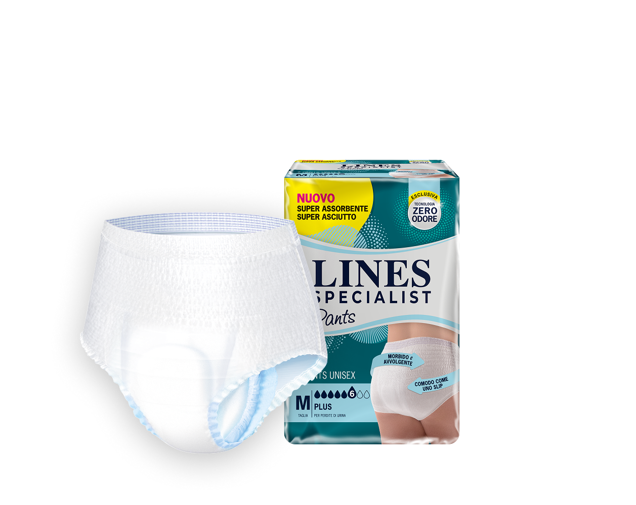 I Pants LINES SPECIALIST sono delicati a contatto con la pelle grazie al loro tessuto morbido e con ossido di zinco -